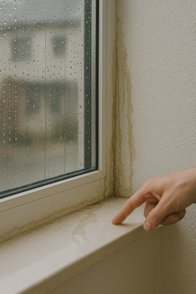 雨の日に窓の下側が濡れていたり、壁紙にシミができていたりするなら、サッシの雨漏りが原因かもしれません。