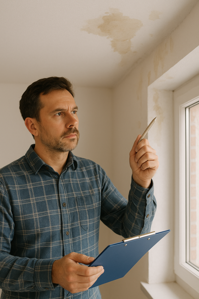 雨染みやひび割れを見つけた場合、その場所を正確に記録することが重要です。