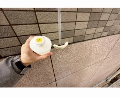 外壁目地の亀裂に発光調査液(イエロー)を添加し散水