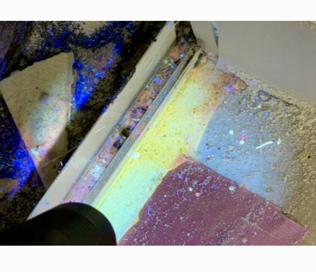 漏水箇所にブラックライトを照射し発光反応(イエロー)を確認